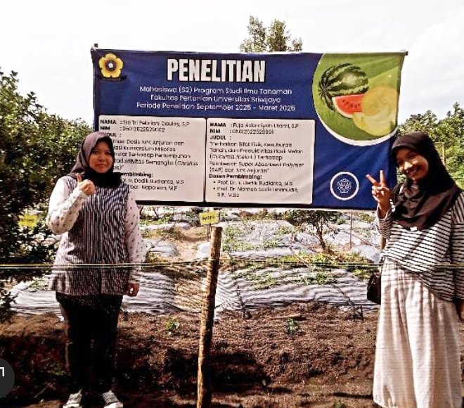 Muara Enim Sumselpost.co.id-2 (dua ) Mahasiswa (S2) Program Studi ilmu tanaman fakultas Pertanian Universitas Sriwijaya (Unsri) Masa Periode penelitian September 2025-Maret 2026, melakukan penelitian dan penanaman tumbuhan jenis hortikultura yaitu buah melon dan semangka.