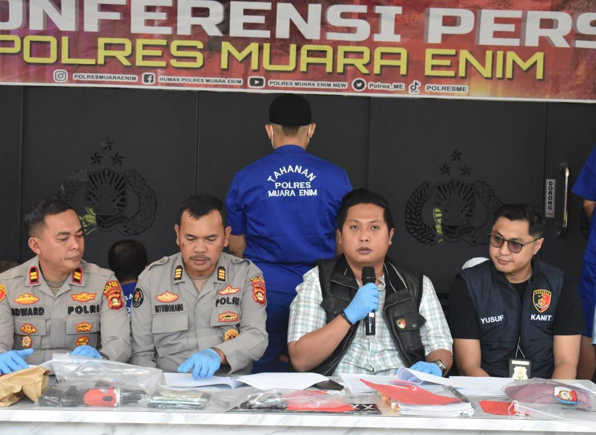 Dalam konferensi pers yang digelar di Mapolres Muara Enim, Kasat Reskrim Polres Muara Enim AKP Yogie Sugama Hasyim, S.Tr.K., S.I.K., didampingi Kasi Humas Polres Muara Enim AKP RTM Situmorang, menjelaskan kronologis lengkap penangkapan tersangka F.A, pelaku pembunuhan terhadap korban H.M, berdasarkan Laporan Polisi Nomor LP/B-126/V/2024/SPKT/Polres Muara Enim/Polda Sumsel tanggal 7 Mei 2024.