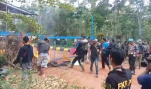 OKI Sumselpost.co.id – Petugas mulai dari Polres OKI dan BKO Polda, TNI, Manggala Agni, BPBD, PT Sampoerna Agro dan PT Waimusi dan masyarakat peduli api masih berjibaku melakukan pemadaman lahan gambut seluas 10 hektar yang sudah tiga hari terbakar di Desa Tanjung Sari 2 Kecamatan Lempuing Jaya.