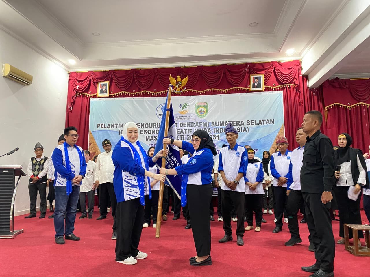 Ketua Dewan Pimpinan Pusat (DPP) DEKRAFMI, Angelique Verina, secara langsung melantik Kotri Juliana, S.Kom sebagai Ketua DPD DEKRAFMI Sumsel, didampingi Ainal Mubaraq, S. sebagai Sekretaris Jenderal, bersama sekitar 50 pengurus lainnya.