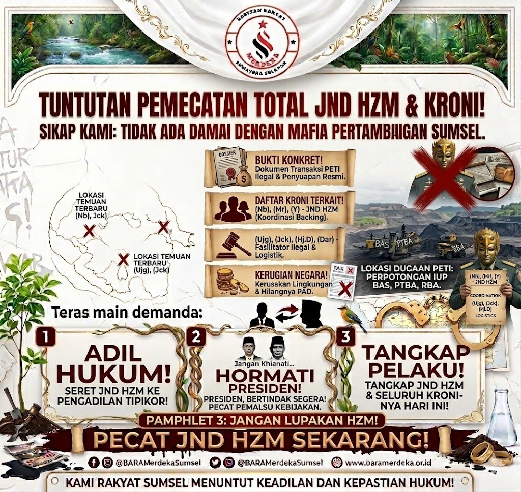 Maka untuk menindaklanjuti temuan Bara Merdeka Sumatera Selatan dalam waktu dekat akan melaporkan dugaan keterlibatan (Hzm) dalam aktiftas para penambang batubara ilegal