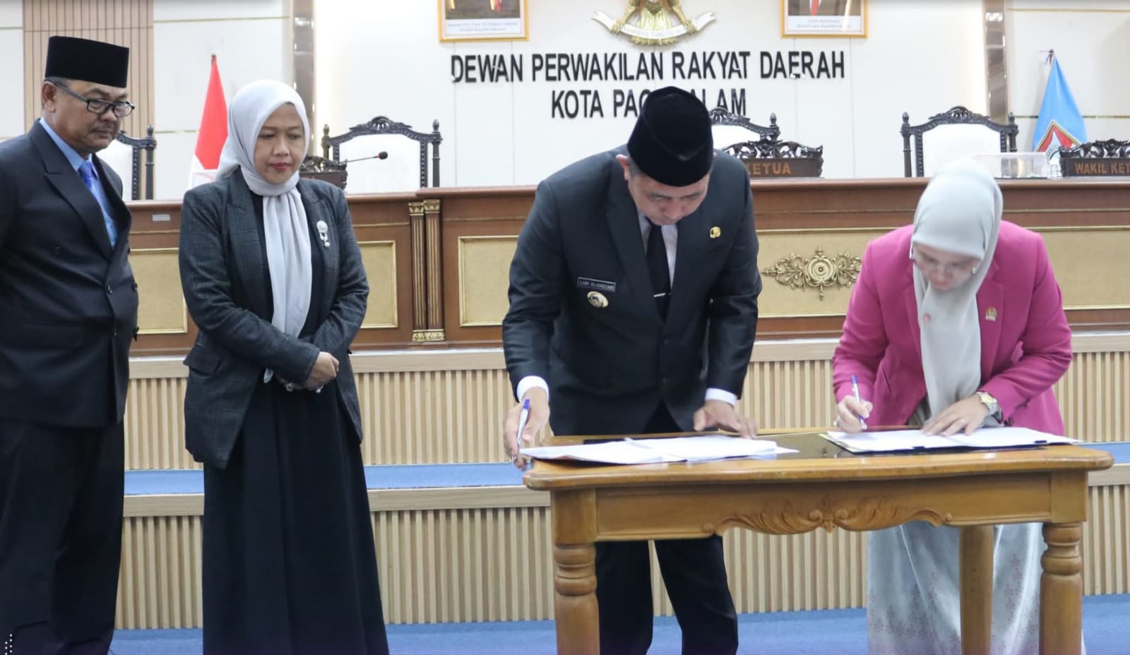 Setelah disetujui, kemudian dituangkan dalam penandatanganan keputusan bersama yang dilaksanakan oleh Wali Kota Ludi Oliansyah dan Ketua DPRD Hj. Jenni Shandiyah didampingi Wakil Ketua I Hj. Dessy Siska, Wakil Ketua II H. Syahrol Efendi, beserta Forkompimda Pagar Alam, bertempat di Ruang Sidang Utama DPRD Kota Pagar Alam, Sabtu, 29 November 2025.