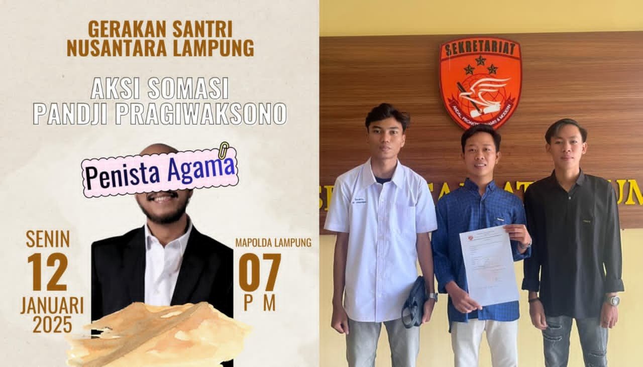 SumselPost.co.id. Bandar Lampung, Senin (12/1/2026) — Gerakan Santri Nusantara (GSN) Lampung secara resmi melaporkan dugaan penistaan agama yang diduga dilakukan oleh komika Pandji Pragiwaksono ke Kepolisian Daerah (Polda) Lampung.