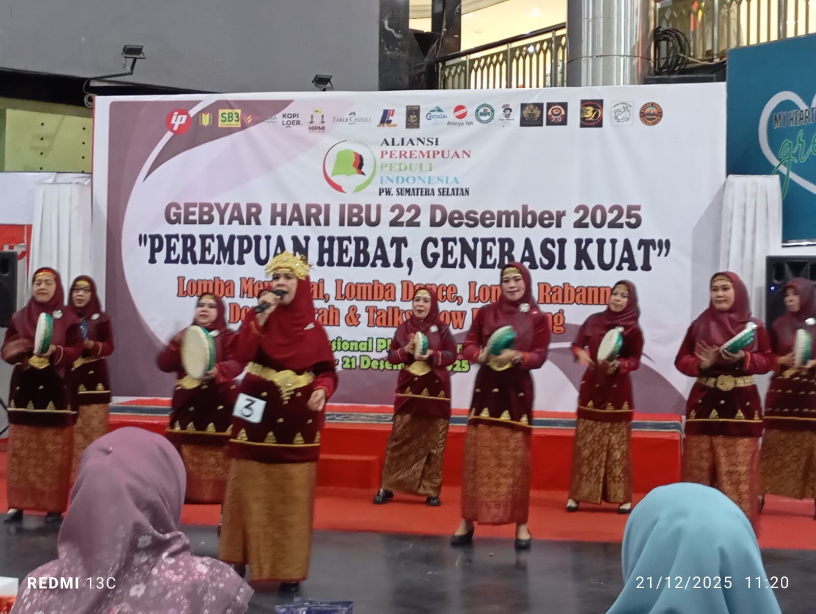 Gebyar Hari Ibu tersebut diadakan oleh Aliansi Perempuan Peduli Indonesia (APPI) PW Sumatera Selatan dengan mengusung tema “Perempuan Hebat, Generasi Kuat”. Beragam perlombaan turut memeriahkan acara, di antaranya lomba mewarnai, lomba dance, dan lomba rebana.