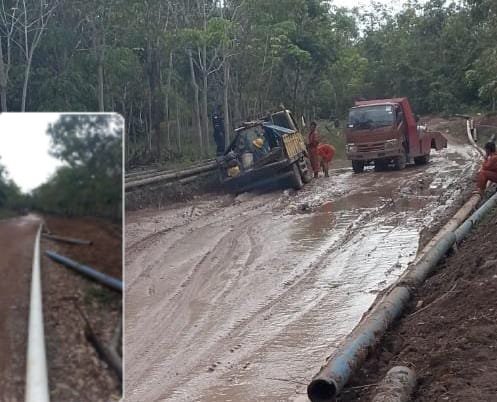 Saat media ini melintasi jalan kawasan tersebut, secara tidak sengaja menemukan adanya potongan pipa berserakan yang juga dengan kondisi jalan yang rusak tersebut, sehingga akses jalan sangat terganggu serta mengancam keselamatan warga yang melintas.