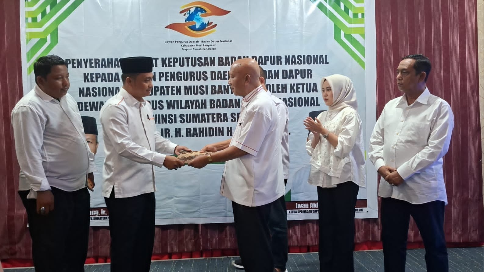 Musi Banyuasin Sumselpost.co.id -Ketua Badan Dapur Nasional (BDN) Badan Pimpinan Wilayah (BPW) Provinsi Sumatera Selatan Dr H Rahidin H Anang MS, secara resmi menyerahkan mandat kepada Ketua Badan Pengurus Daerah (BPD) Badan Dapur Nasional (BDN) Kabupaten Musi Banyuasin (Muba) Iwan Aldes ,S,Sos,M.Si, yang berlangsung di Hotel Grand Ranggonang jalan merdeka Balai Agung Kecamatan Sekayu Kabupaten Musi Banyuasin Sumatera Selatan,Sabtu (17/01/2026).