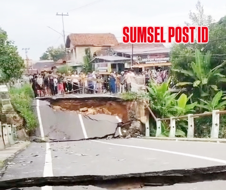Prabumulih Sumselpost.co.id – Kondisi jembatan dijalan Tanggamus Kelurahan Muara Dua Kecamatan Prabumulih Timur Kota Prabumulih, tiba-tiba mengalami amblas, Kamis (11/12/2025) sore.