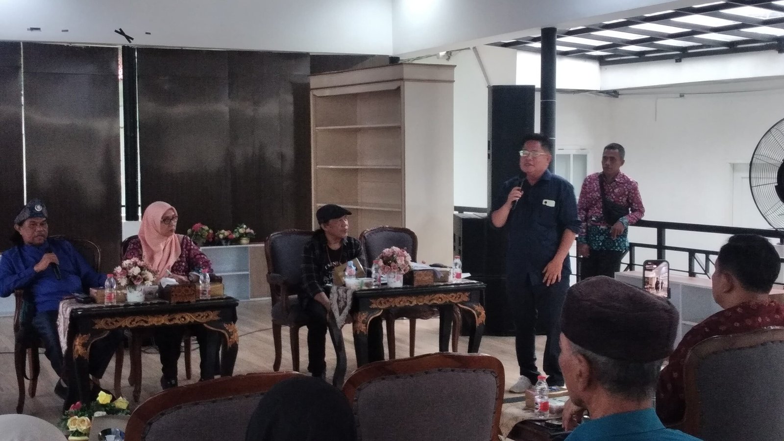 FGD menghadirkan narasumber pemantik Kepala Dinas Sosial Kota Palembang M. Raimon Lauri AR, S.STP., M.Si, Ketua Harian TP2GD Kota Palembang Dr. Kemas A.R. Panji, M.Si, Pelukis/Dewan Kesenian Palembang Marta Astrawinata, serta Budayawan Palembang Vebri Al-Lintani.