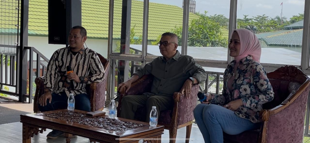 Ketua Umum Asosiasi Kreator Konten Seluruh Indonesia (AKKSI), Helmy Yahya, hadir langsung untuk berdialog dan berbagi pengalaman bersama para kreator muda. Didampingi oleh Ketua AKKSI DPW Sumatera Selatan, Hidayatul Fikri atau akrab disapa *Mang Dayat*, serta Wakil Ketua Indah Rizky Ariani (Indah Mujyaer), suasana diskusi berlangsung hangat dan penuh semangat.