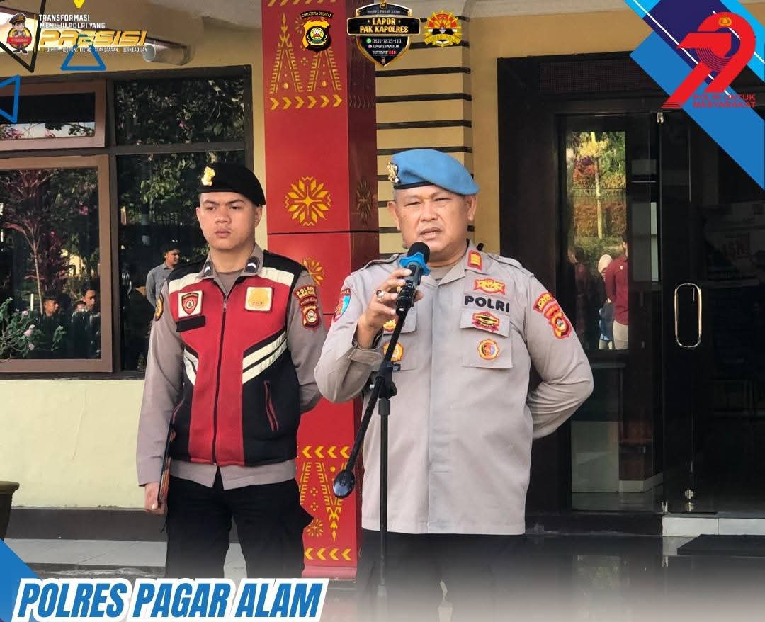 Pagaralam, Sumselpost.co.id – Kamis, 24 Juli 2025 pukul 08.00 WIB, Polres Pagaralam menggelar apel pagi yang dipimpin oleh Kabag SDM Kompol Kasmini Darda, SH dan dilanjutkan oleh Kasi Propam AKP Efriensi, SH. Kegiatan ini merupakan bagian dari upaya meningkatkan disiplin personel serta mendukung pelaksanaan Operasi Patuh 2025.
