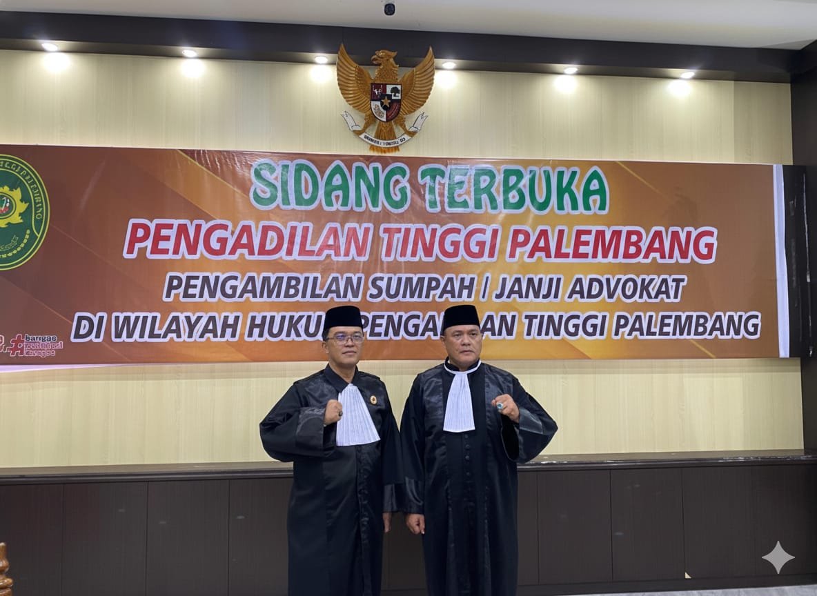 Palembang, Sumselpost.co.id – Saryono Anwar, S.Sos., S.H., CPM., dan Yeri Mediansyah, S.H., resmi menyandang gelar advokat setelah menjalani Sidang Terbuka Pengambilan Sumpah/Janji Advokat di Pengadilan Tinggi Palembang, Selasa (27/1). Pelantikan ini bukan sekadar seremoni, melainkan awal dari tanggung jawab besar dalam menegakkan supremasi hukum yang berkeadilan.