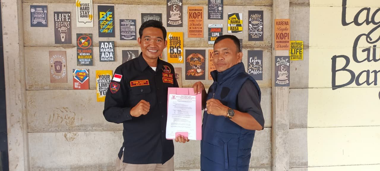 SumselPost.co.id. Palembang, – Ketua GRIB Jaya Sumsel Hasbi Sanaki di dampingi Wakil Kepala Bidang ( Wakabid) Kominfo DPD GRIB Jaya Sumsel Usman Gumanti menyerahkan SK Mandat ke Ketua DPC GRIB Jaya Banyuasin.