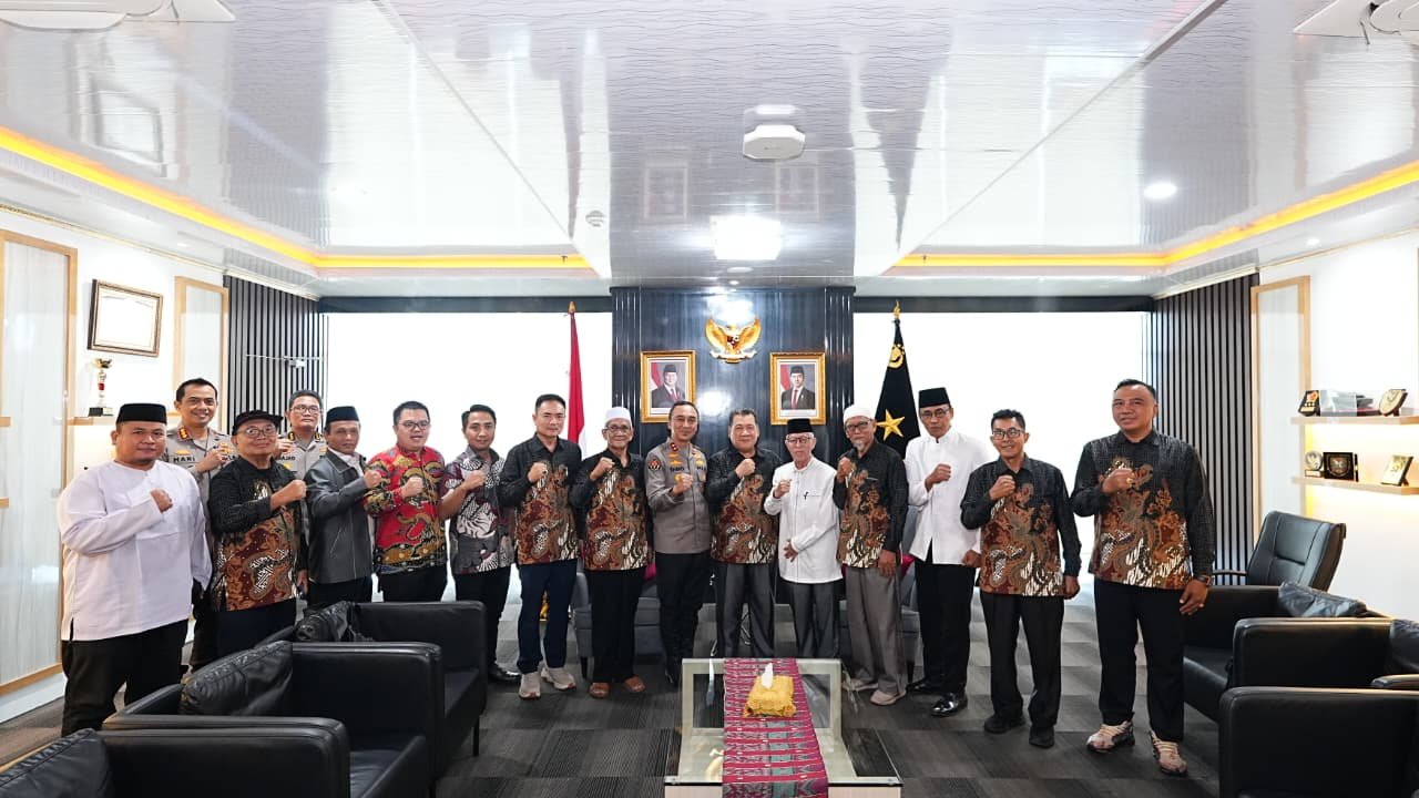 Palembang Sumselpost.co.id – Kapolda Sumatera Selatan Inspektur Jenderal Polisi Dr. H. Sandi Nugroho, S.I.K., S.H., M.Hum. menerima audiensi dan lawatan kerja jajaran pengurus Forum Kerukunan Umat Beragama (FKUB), Majelis Ulama Indonesia (MUI), dan Lembaga Dakwah Islam Indonesia (LDII) Provinsi Sumatera Selatan.