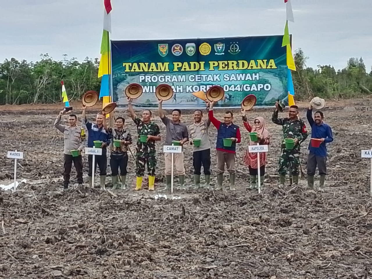 Muara Enim Sumselpost.co.id – Dalam rangka mendukung serta mensukseskan program ketahanan pangan nasional melalui lahan cetak sawah rakyat Corporate Social Responsibility (CSR), Kapolsek Lembak Polres Muara Enim Iptu Yopi Maswan,SH, beserta anggota,serta bersama Camat Lembak diwakilkan Sekcam Lembak Jhon Lara Sakti, SH, Danramil 404-01 Gelumbang Kapten Inf Agos Sanjaya beserta anggota,Koordinator BPP Tanjung Bunut Temat SP MP, beserta staf serta turut hadir pula Kades Alai Ira Nanang, Kades Talang Nangka Zulkifli, Pj Kades Petanang Kisman,SE, para perangkat Desa, BPD, Karang Taruna, Desa Petanang.dan para Gapoktan dari 3 Desa tersebut, ramai-ramai melaksanakan penanaman padi sawah perdana dengan lokasi di Dusun I Desa Petanang Kecamatan Lembak Kabupaten Muara Enim, Kamis.(23/10/2025) sekitar pukul 09:00 WIB.