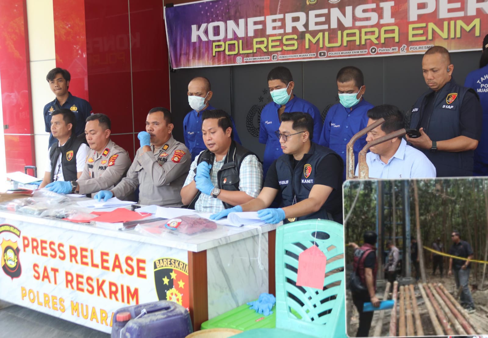 Konferensi pers tersebut dipimpin oleh Kasat Reskrim Polres Muara Enim AKP Yogie Sugama Hasyim, S.T.K., S.I.K., didampingi Kasi Humas Polres Muara Enim AKP RTM. Situmorang, Kamis (9/10/2025) di Mapolres Muara Enim.